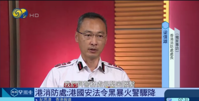 香港消防处处长梁伟雄:国安法令黑暴火警骤降