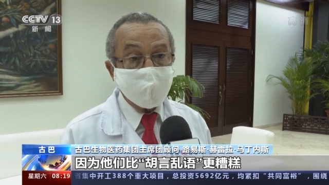 古巴生物医药集团主席团顾问 路易斯·赫雷拉·马丁内斯:这展现了美国有多么虚伪,他们在政治上扮演的角色就是随意指责任何他们想指责的国家,我认为这完全就是典型的傲慢态度,自认为凌驾于全世界之上。