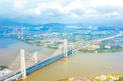 位于广东佛山市和江门市交界处的南沙港铁路跨西江斜拉桥,是粤港澳大湾区重点工程。金 伟摄(人民视觉)