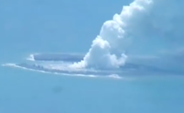 日本硫黄岛附近海底火山喷发后 出现马蹄状新岛