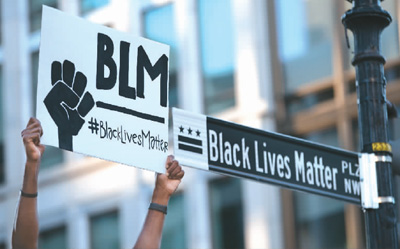 2020年6月,一名男子在白宫附近手举“黑人的命也是命”的标语,抗议警察暴力执法致非裔男子乔治·弗洛伊德丧生。 新华社记者 刘 杰摄