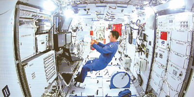 “牛郎织女在天河团聚,我们在‘天和’舱向大家送上祝福!”七夕当天,三位航天员还从太空发来祝福。