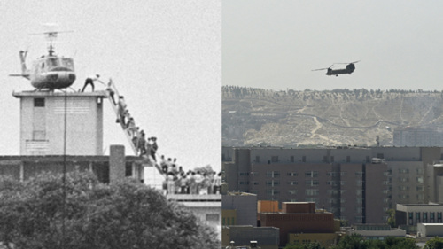 1975年美军撤离越南西贡与2021年美国驻阿富汗大使馆撤离对照图