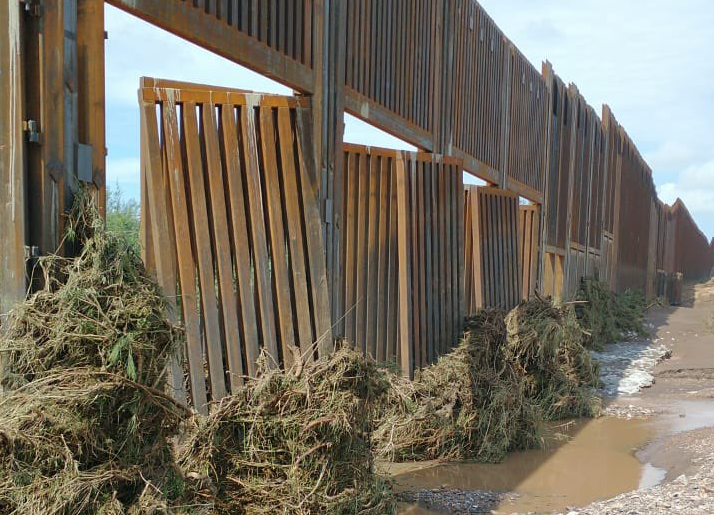 据纽约每日新闻网8月22日报道,美国与墨西哥交界处的亚利桑那州南部遭遇恶劣天气,有可能打破自1964年以来的降雨量纪录。暴雨破坏了美墨边境墙,几扇金属门完全敞开,已与铰链分离,还有一些被泥和碎石卡住。美国海关和边境保护局已经证实,“历史性”大洪水是这次墙体破损的成因。