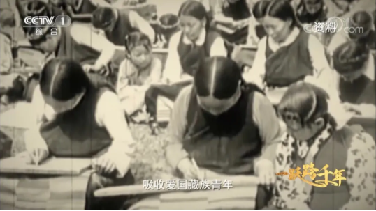 镜头一转,一组拍摄于1952年的黑白影像中,解放军和藏族青年们正坐在一起学习。这是一座坐落于拉萨河畔的学校,解放军学员在这里学习藏文藏语,爱国藏族青年则学习汉语文和政治,为西藏培养出了首批汉语文干部。