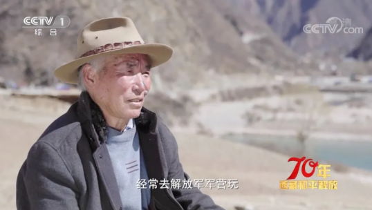 普巴老人说,他8岁时经常去解放军军营玩耍(图源:央视)