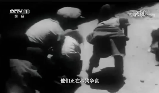 旧西藏,农奴流浪儿与野狗争食(图源:央视)