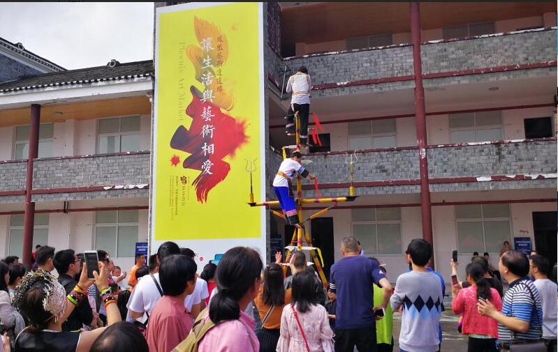 “凤凰艺术边边场”上演出的“上刀山”民间绝技