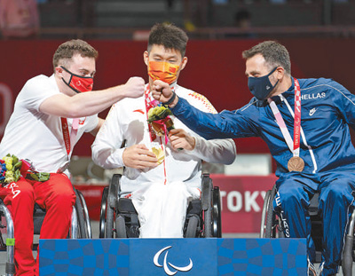“今天的比赛能拿下来很不容易,在落后时我告诉自己不能放弃,要沉住气,击好每一剑。”初生牛犊不怕虎,李豪首次参加残奥会,却展现出了一颗“大心脏”。他自认为取胜的关键是,在比赛中不论比分胶着还是身处逆境,都要及时调整心态,在毫厘之间把握机会,锁定胜局。