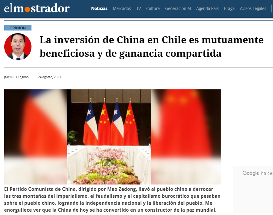 智利媒体声称“中国投资威胁智利国家安全”,