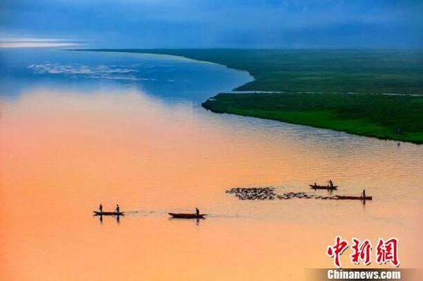 千里嘉陵江行至四川蓬安相如镇脚下,被江心一片草色青绿的滩漫隔开,因其状若圆日,当地人又将这个江中岛屿称作太阳岛,而就在刚刚过去的五一小长假,这里成为蓬安“人气”最火的景点之一,吸引了来自全国各地数万游客到此“打卡”,人们围观的是一幕被称为“百牛渡江”的奇景:每天清晨,百余头大水牛横渡嘉陵江,上岛啃食青草,日暮则涉水归栏,江水相依、牛头涌动,颇为壮观。