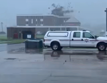 在目击者记录的视频中,伴随着飓风所带来的刺耳的噪声,这家医院的屋顶被掀起一大块,随后又被强风吹成碎片,在空中纷飞散落。