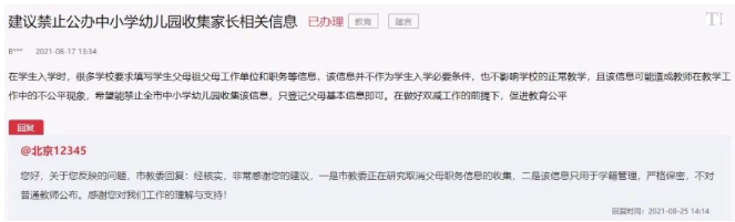 对此,北京市教委回应称,正研究取消学校对相关信息的收集。