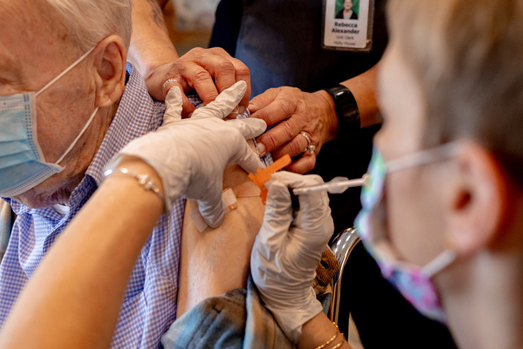 美国宾夕法尼亚州伍斯特县,老年人集体接种第三针新冠疫苗。图源:人民视觉。