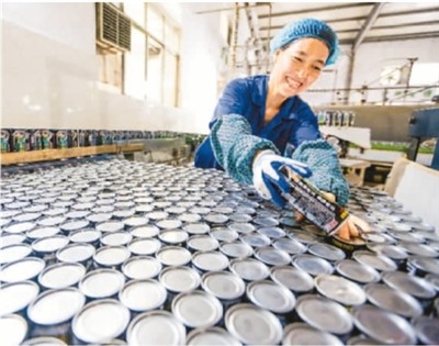 近年来,江西省吉安市峡江县大力开展普惠金融业务,创新信贷产品,推动解决小微企业融资难、融资贵等问题。近日,位于峡江县砚溪镇的华源食品有限公司获得当地金融机构推出的“财源信贷通”300万元贷款,新上了两条生产线。图为工人在该公司车间内忙碌。陈福平摄(人民视觉)
