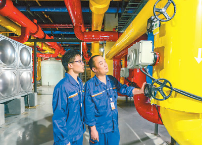 在武钢大数据产业园基地,员工正对机柜维护设备巡检。张 磊摄(人民视觉)