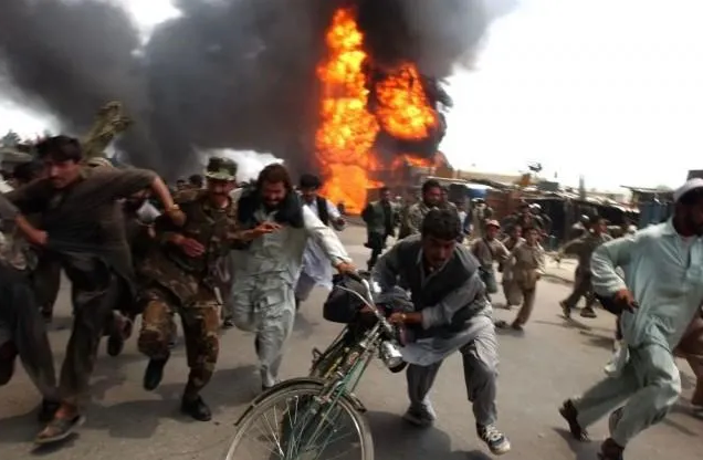 2003年6月,民众逃离喀布尔一处爆炸现场。图源:新华社