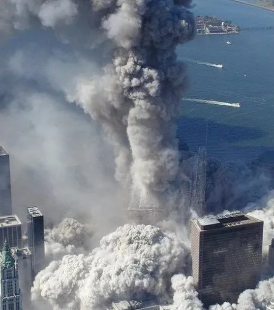 世贸双子塔倒塌时的航拍照片(图源:美媒)