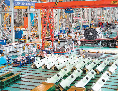 近年来,位于重庆市江津区的中冶赛迪装备有限公司坚持走科技创新之路,把技术研发与装备设计、制造、成套紧密结合,形成了水渣转鼓、万能轧机等一大批特色产品。图为近日拍摄的该公司冶金装备生产车间。新华社记者 刘 潺摄