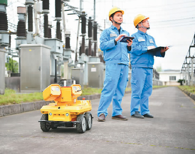 南方电网贵州铜仁供电局近来对变电站进行智能升级,充分运用5G技术搭建数字化平台,由智能机器人对站内4000多个巡视点进行自主检测和故障排查,大幅缩短了故障排查时间。图为9月12日,工作人员运用5G机器人开展变电站巡视工作。范才夫摄(人民视觉)