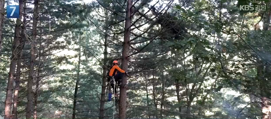 中国男子在韩国野山采松子身亡 救援队爬高树救
