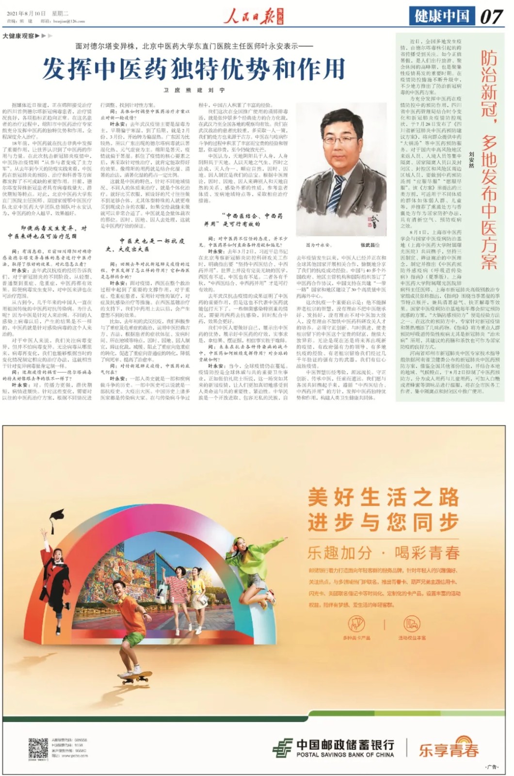 运用多种形式向世界讲好中国中医药抗疫故事,充分展现中国优势、中国精神、中国贡献。自新冠肺炎疫情暴发以来,习近平总书记高度重视疫情防控工作,亲自领导、亲自指挥、亲自部署,多次强调要坚持中西医结合、中医药并用。人民日报海外版融媒矩阵创新方法手段,在主流媒体中较早进行中医药抗疫报道,2020年2月至4月,刊发相关报道等60余篇(幅),及时、全面、深入地向世界讲好中医药抗疫故事。2021年以来,以“健康中国”版为依托,围绕“中医药走出去”主题,大力弘扬中医药文化,让海外受众更加全面科学地认识中医药。文艺板块则继续做好“华音环洋”“新国潮”“文艺圈洋面孔”“中国经典作家在海外”“好声音”等栏目,介绍中华文化走出去的动态现状;继续在“华文作品”版刊登海外华文作家优秀作品。