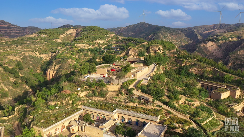 △坐落在黄土高原的杨家沟革命旧址,四周绿树环绕。(总台记者赵振凯拍摄)