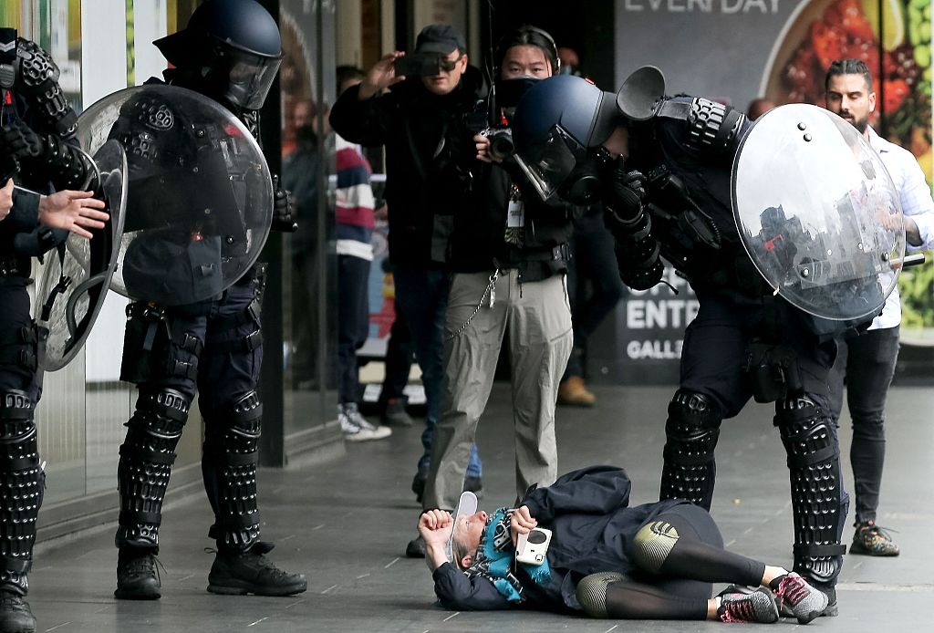 墨尔本发生抗议冲突:数百人聚集市中心 武警拖