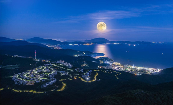 兹读深圳摄影爱好者关超先生的“中秋夜景”照片,它给人以平静与遐想万千。这张照片蕴含着星星给天空增添了诗情画意,月亮使喧嚣的都市之夜变得柔静之意涵。我认为,这张照片不仅宣传梅沙美,也让我对关超先生的营造意境之本领,乃至对“摄影是摄影者的第二语言”有了准确的理解。我以中药名撰联释读其内在之意涵,与君分享: