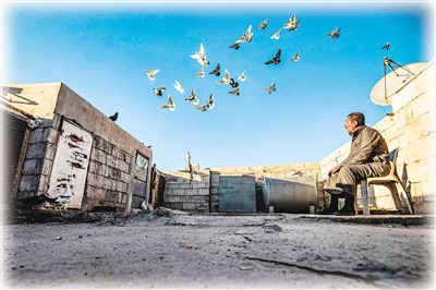 2021年3月15日,叙利亚危机爆发十周年。据联合国难民署统计,危机爆发以来,600多万人在叙利亚境内流离失所。图为3月13日,叙利亚养鸽人阿卜杜勒-哈米德·哈纳在位于拉卡的家中屋顶望着飞起的鸽子。