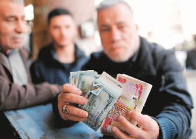 2020年12月19日,伊拉克中央银行发表声明,决定将本国货币第纳尔大幅贬值,最新汇率定为1美元兑换1450伊拉克第纳尔。图为12月20日,在伊拉克巴格达,一名男子在外汇兑换市场手持美元纸钞和第纳尔纸钞。