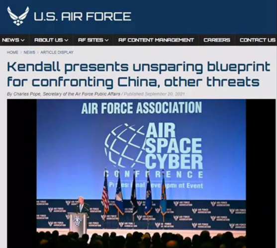 同僚们攻势强大,空军怎么能输?于是新任部长肯德尔亲自站台,鼓吹中国威胁。在30分钟的美国空军协会演说中,他27次提到中国,不断称中国是“最紧迫的安全问题”,美国空军搞新装备、新技术的目的就是要“让中国恐惧(scare China)”。但谁都清楚,肯德尔只是拿中国当幌子,话都说给国内“财神爷”听的。那意思就是:中国都打上门了,你咋还不批钱?