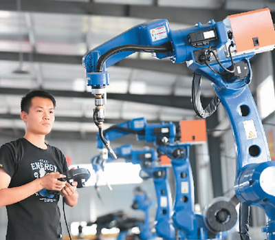 近年来,江西省高安市工业机器人及自动化设备领域生产企业抢抓制造业数字化智能化转型升级新机遇,积极加大研发与应用,相继推出了高端装备、智能家居、新材料等产业所需的机器人产品,在实现自身发展壮大的同时也助力制造业转型升级。图为9月22日,高安市华士科技股份有限公司的员工在调试焊接机器人。 周 亮摄(人民视觉)