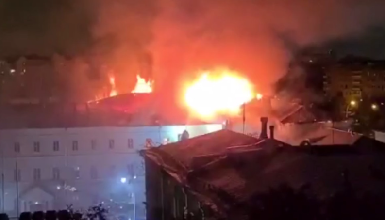 莫斯科市中心一所军事学院发生大火(视频截图)