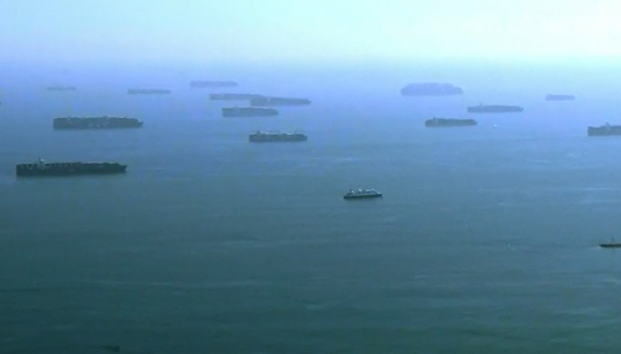 美国港口人力缺乏致严重拥堵 数十艘货船被困
