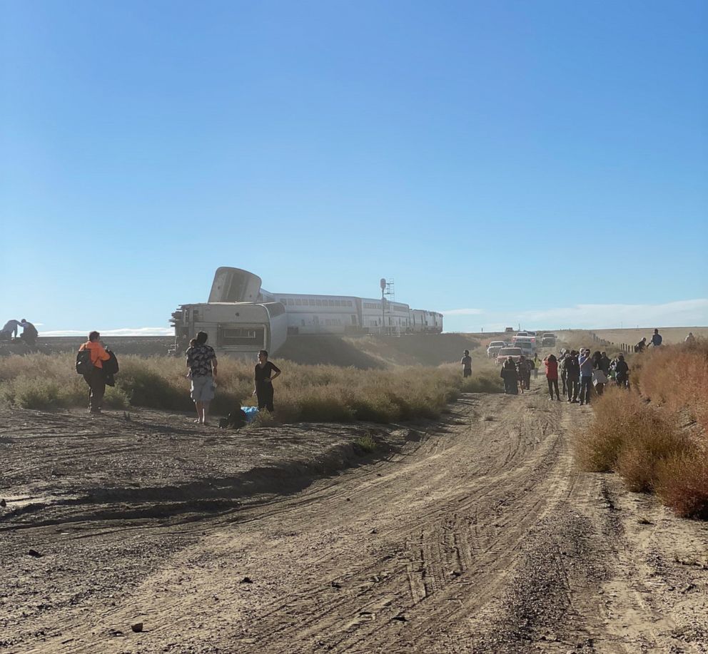 美国火车脱轨现场:大批乘客爬车顶逃生 已致