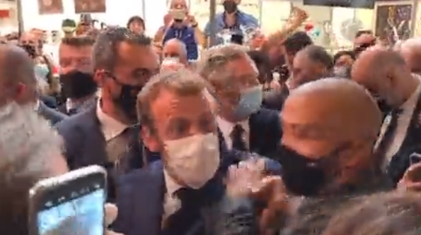 外媒:马克龙参观博览会时被扔蛋形物体