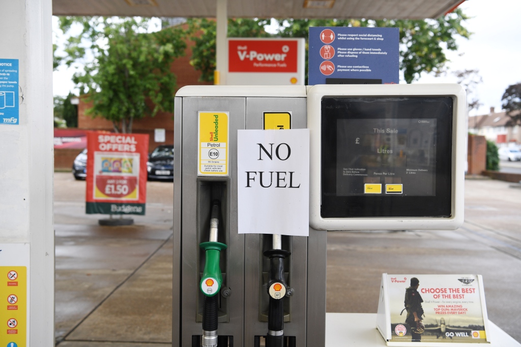 由于英国卡车运输司机短缺,加油站出现燃油供应短缺。