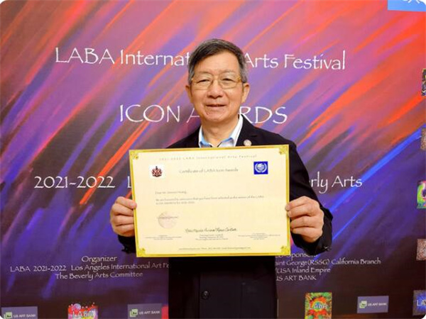 △黄建南获得的“LABA全球最具影响力艺术家”资格证书