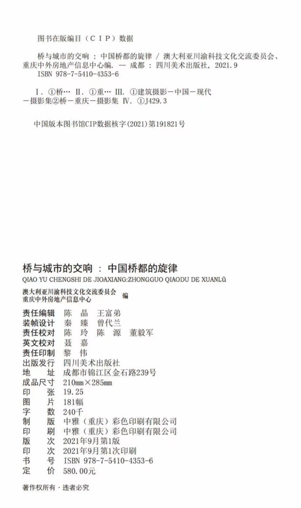 澳大利亚澳华电视传媒(ACTV)9月28日悉尼讯:在中国共产党成立100周年的重要时刻,在中国72周年国庆节之际,澳大利亚川渝科技文化交流委员会和中国重庆市中外房地产信息中心联合编著的《桥与城市的交响·中国桥都的旋律》大型中英文双语书藉巳于2021年国庆节由四川美术出版社正式出版了!据悉,该书全国统一发行,中国国家新闻出版署书号:ISBN 978-7-5410-4353-6。《桥与城市的交响·中国桥都的旋律》
