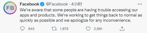 脸书一周内第二次宕机 公司通过竞争对手平台发