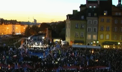 据组织者介绍,示威活动在波兰的100多个城镇和城市以及国外几个城市举行,仅首都华沙就有8万到10万人聚集,人们挥舞着波兰和欧盟的旗帜,高喊“我们不走”。