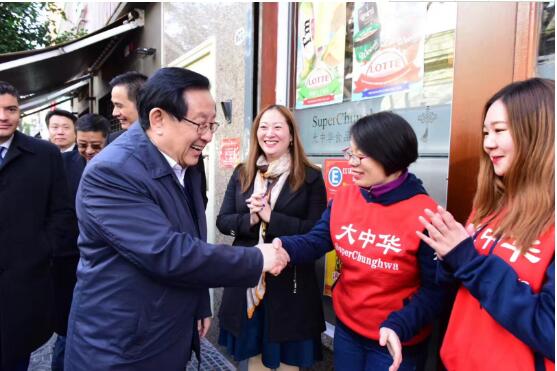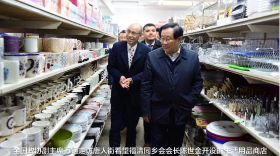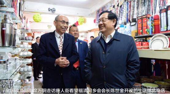 全国政协副主席万钢走访布谊诺斯艾利斯中国城看望华人在唐人街经营的“生活用品商店”,并与阿根廷福清同乡会会长陈世金亲切交流。