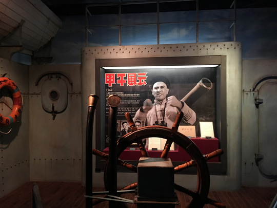 除了静态展示,长影电影艺术馆里还有很多互动项目。在电影《甲午风云》展示区内,这里也是游客互动区域,可以切身体会一下"撞沉吉野"的壮烈。