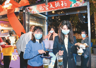 为打造夜经济集聚区城市新名片,广州市各大商圈、商业综合体、文化旅游场所的商家推出夜间消费节活动,提升冬夜烟火气。图为日前市民在广州夜经济集聚区天德广场购买美食。