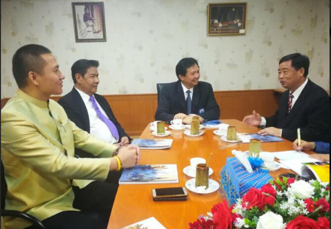 春武里府省长威塔亚•坤夯(右二),春武里府副省长列瓦•衮如印(左二)与张家界市委副书记刘绍建(右一)亲切会晤,中泰旅行网董事长李灵海(左一)陪同。