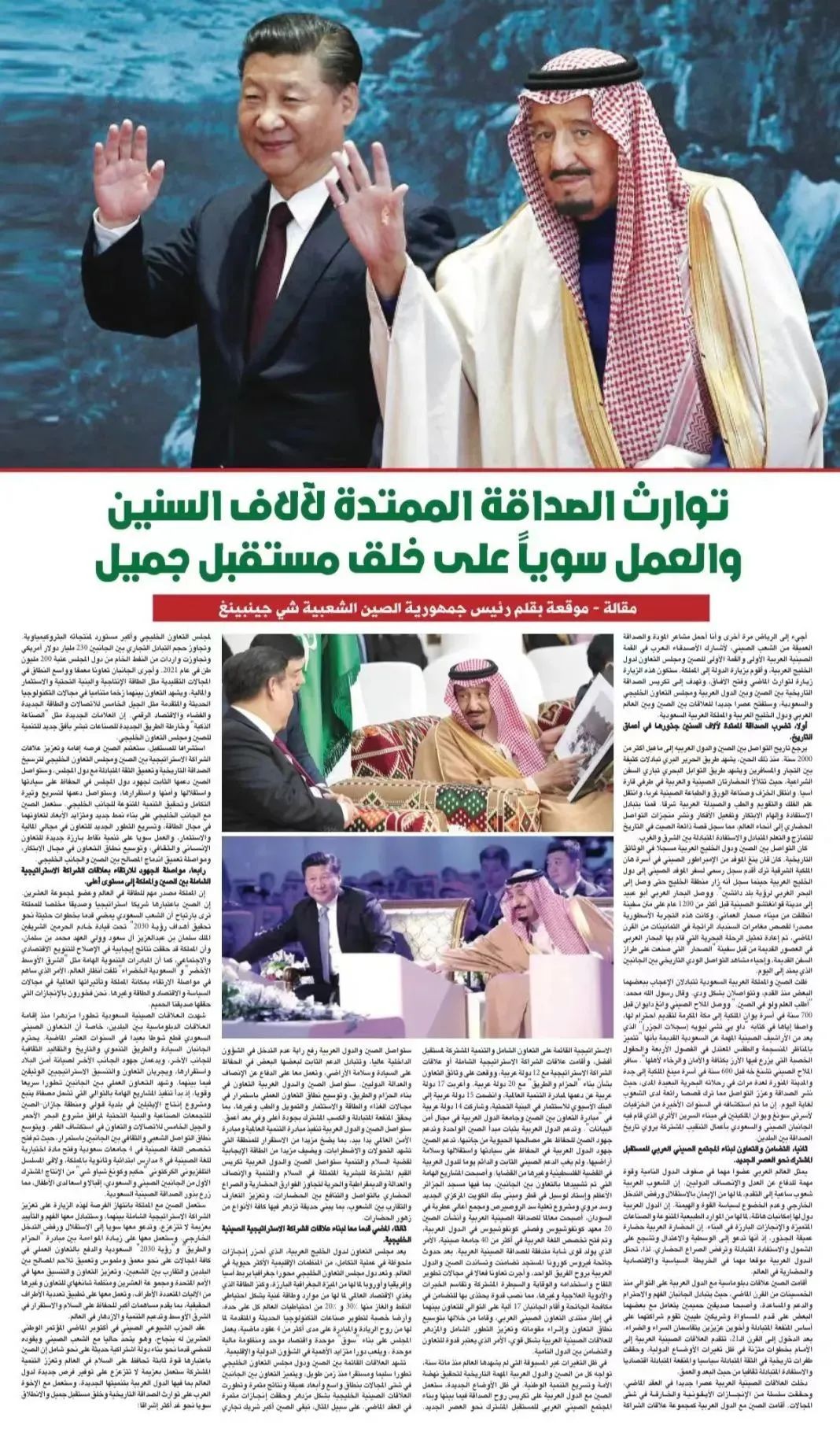 12月8日,在抵达沙特首都利雅得出席首届中国—阿拉伯国家峰会、中国—海湾阿拉伯国家合作委员会峰会并对沙特进行国事访问之际,习近平的署名文章《传承千年友好,共创美好未来》在《利雅得报》发表,埃及、约旦、科威特等阿拉伯国家的媒体纷纷转载。6年前,也是在《利雅得报》,习近平发表过题为《做共同发展的好伙伴》的文章。两篇署名文章都在沙特和阿拉伯国家收获热烈反响。