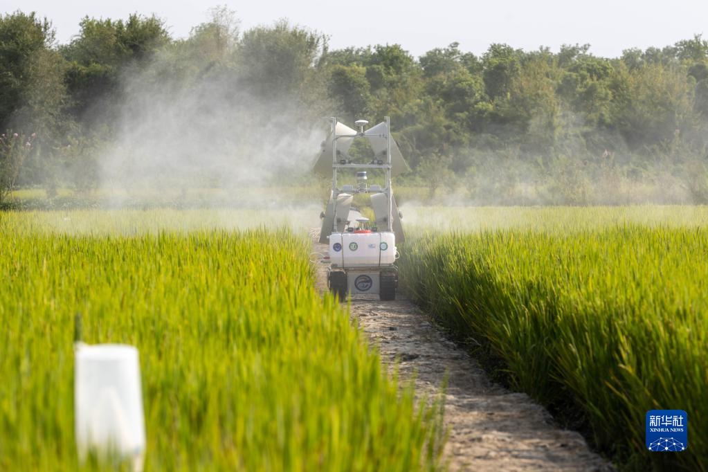 2022年9月22日,在上海土是宝数字农场,智能变量喷雾机器人利用中国移动5G+北斗高精度定位,实现精准规划的农机作业范围。新华社记者 王翔 摄