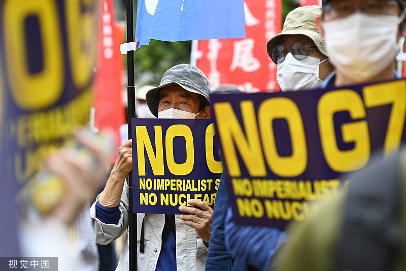5月19日,日本广岛,人们在街头抗议举行七国集团(G7)峰会。(图源:视觉中国)