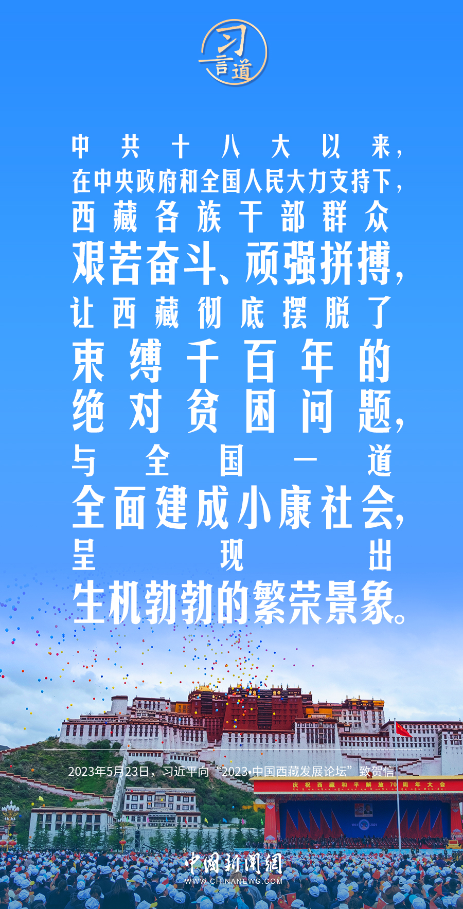 5月23日,国家主席习近平向“2023•中国西藏发展论坛”致贺信。党的十八大以来,习近平始终心系西藏、情系西藏,多次就西藏工作作出重要论述。
